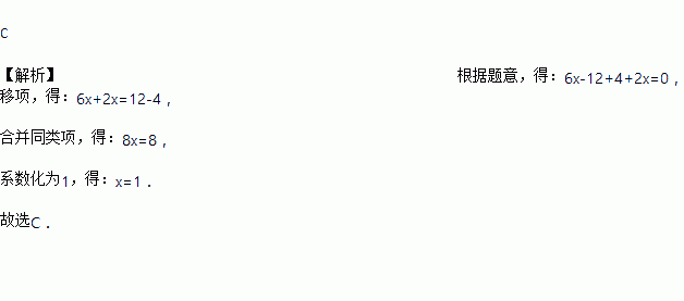 已知代数式6x-12与4+2x的值互为相反数,那么x的值等于 ( )