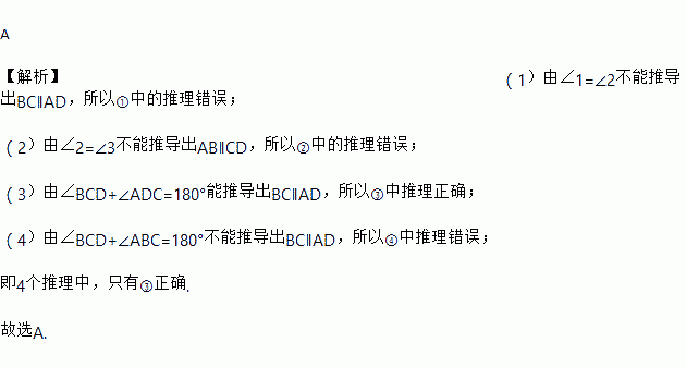 ③因为∠BCD+∠ADC=180°,所以AD∥BC;