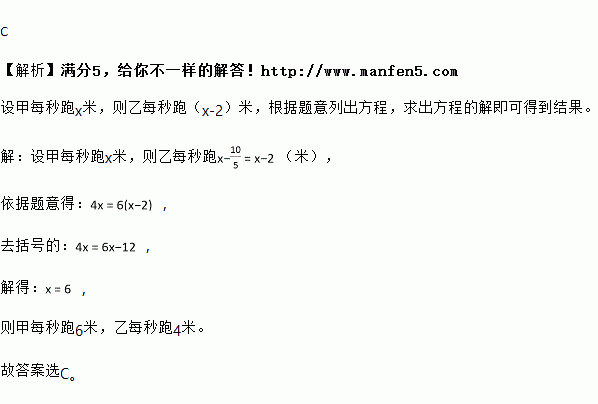 甲乙两人练习跑步,甲先让乙跑10米,则甲5秒钟追上乙,若甲让乙先跑2秒,甲跑4秒就追上乙,甲乙两人每秒分别跑( )