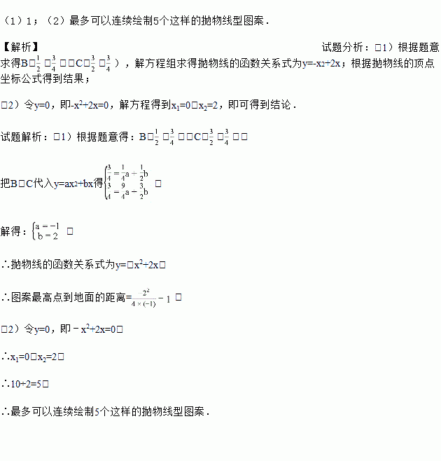 (2)若该墙的长度为10 m,则最多可以连续绘制几个这样的拋物线型图案?