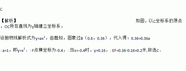 如图,某校的围墙由一段相同的凹曲拱组成,其拱状图形为抛物线的一部分,栅栏的跨径AB间,按相同间隔0.2米用5根立柱加固,拱高OC为0.36米,则立柱EF的长为( )