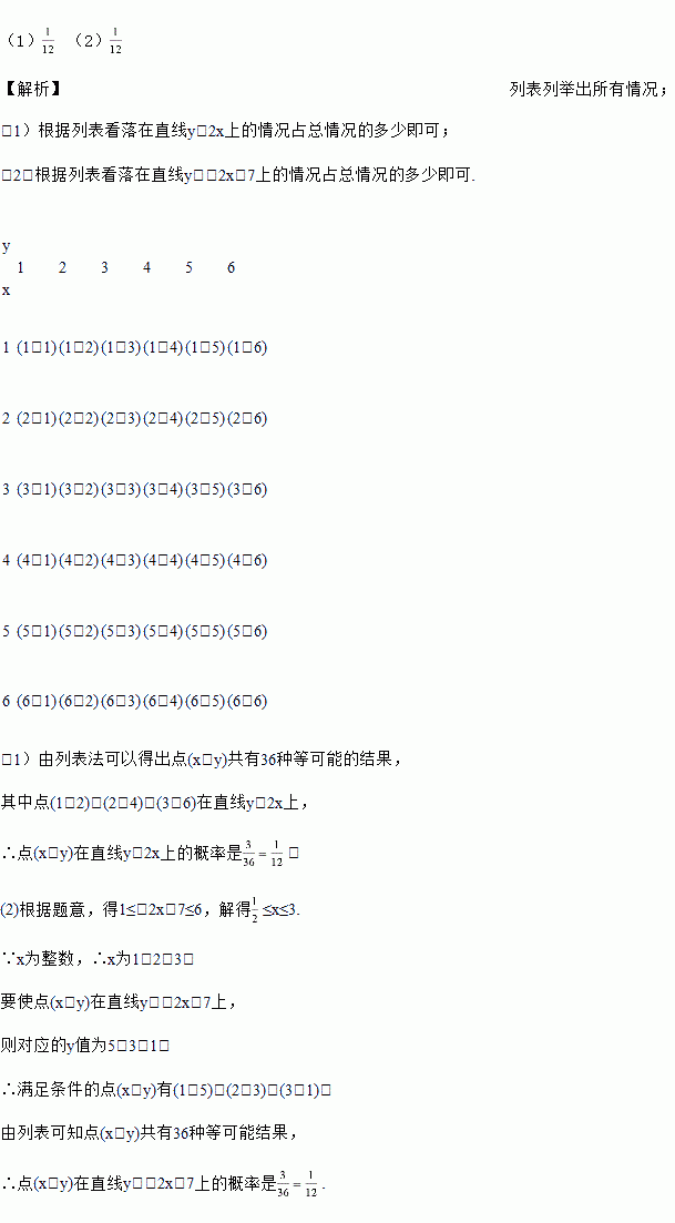 (2)求点(x,y)在直线y=-2x+7上的概率.