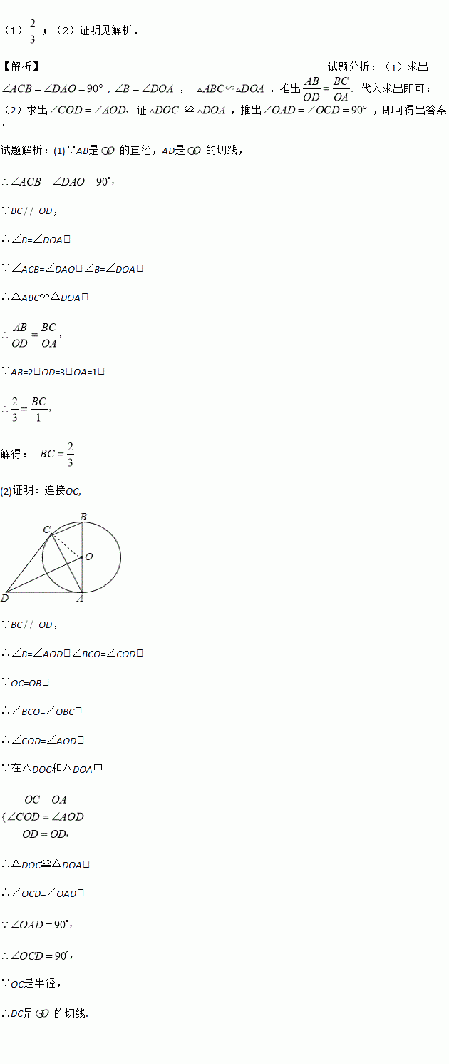 如图,AB是⊙O的直径,AD是⊙O的切线,点C在⊙O上,BC∥OD.