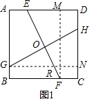 分析 (1)可通过构建全等三角形来求解.分别过G、F作GN∥AD,FM∥CD,那么FM=GN,∠EMF=∠GNH=90°,而∠OGN和∠OFM都是等角的余角,因此△GNH≌△FME,那么可通过全等三角形得出GH=EF;