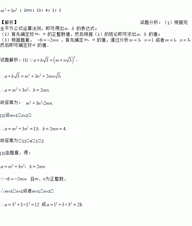 利用所探索的结论,请找一组正整数a、b、m、n填空: