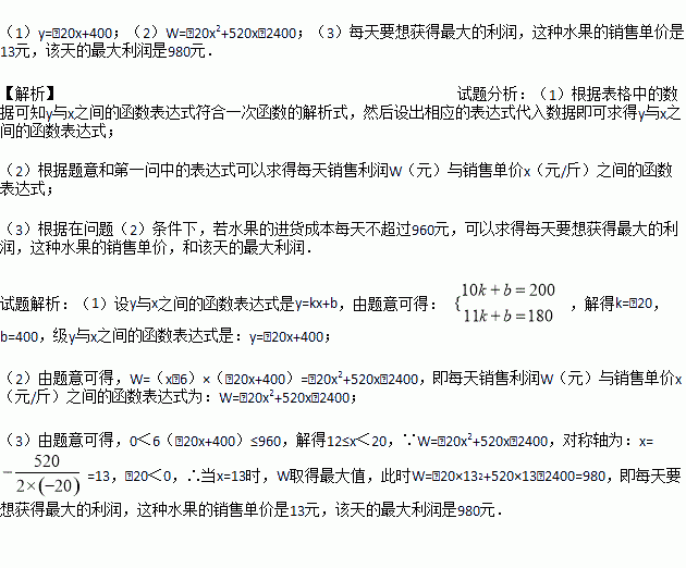£¨3£©ÔÚÎÊÌ⣨2£©Ìõ¼þÏ£¬ÈôË®¹ûµÄ½ø»õ³É±¾Ã¿Ìì²»³¬¹ý960Ôª£¬Ã¿ÌìÒªÏë»ñµÃ×î´óµÄÀûÈó£¬ÊÔÈ·¶¨ÕâÖÖË®¹ûµÄÏúÊÛµ¥¼Û£¬²¢Çó³ö¸ÃÌìµÄ×î´óÀûÈó£®