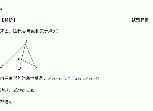 A. ∠APC>∠B B. ∠APC=∠B C. ∠APC<∠B D. 不能确定