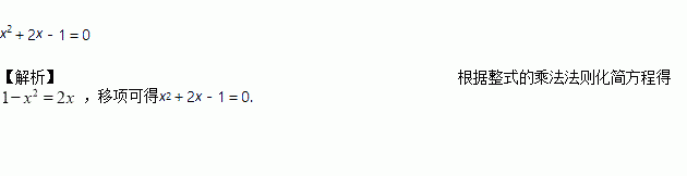 把一元二次方程(x+1)(1-x)=2x化成二次项系数大于零的一般形式是________________.