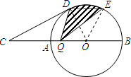 (2)据弦DE∥CB,可以连接OE,则阴影部分的面积就转化为扇形ODE的面积.所以阴影部分的面积不变.只需根据直角三角形的边求得角的度数即可.