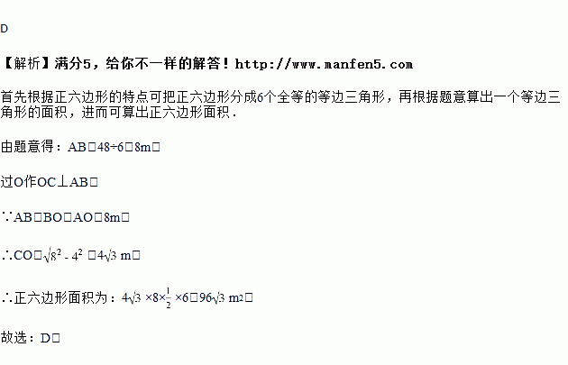 用长的篱笆在空地上围成一个正六边形的绿化场地,那么这个场地的面积为( )