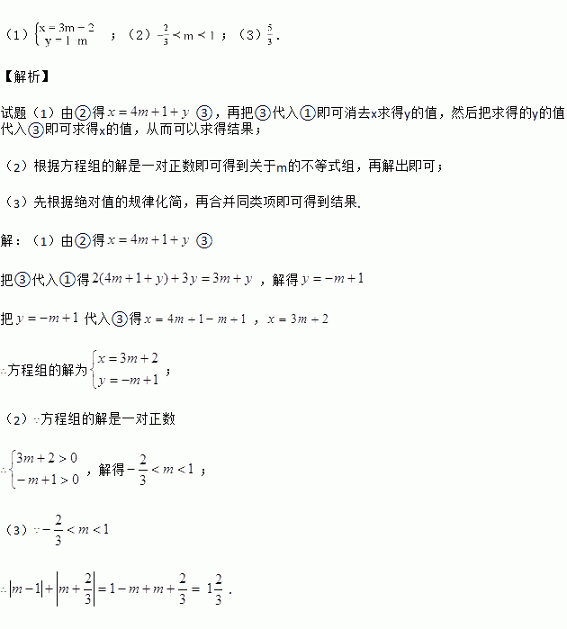 (1)试用m表示方程组的解;