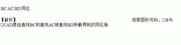如图所示,∠B与∠CAD是由直线__________和直线__________被直线__________所截得到的__________角.