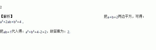 已知a+b=2,ab=1,则a2 + b2=__________.