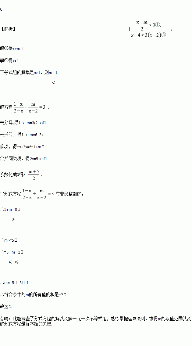如果关于的不等式组的解集为,且关于的分式方程有非负整数解,则符合条件的的所有值的和是( )
