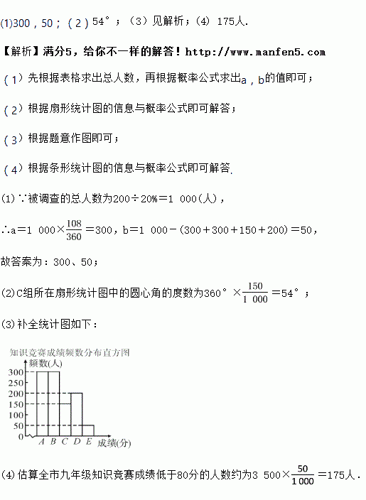 (4)ÒÑÖª¸ÃÊоÅÄê¼¶ÓÐ3500ÃûѧÉú£¬Çë¹ÀËãÈ«ÊоÅÄ꼶֪ʶ¾ºÈü³É¼¨µÍÓÚ80·ÖµÄÈËÊý£®