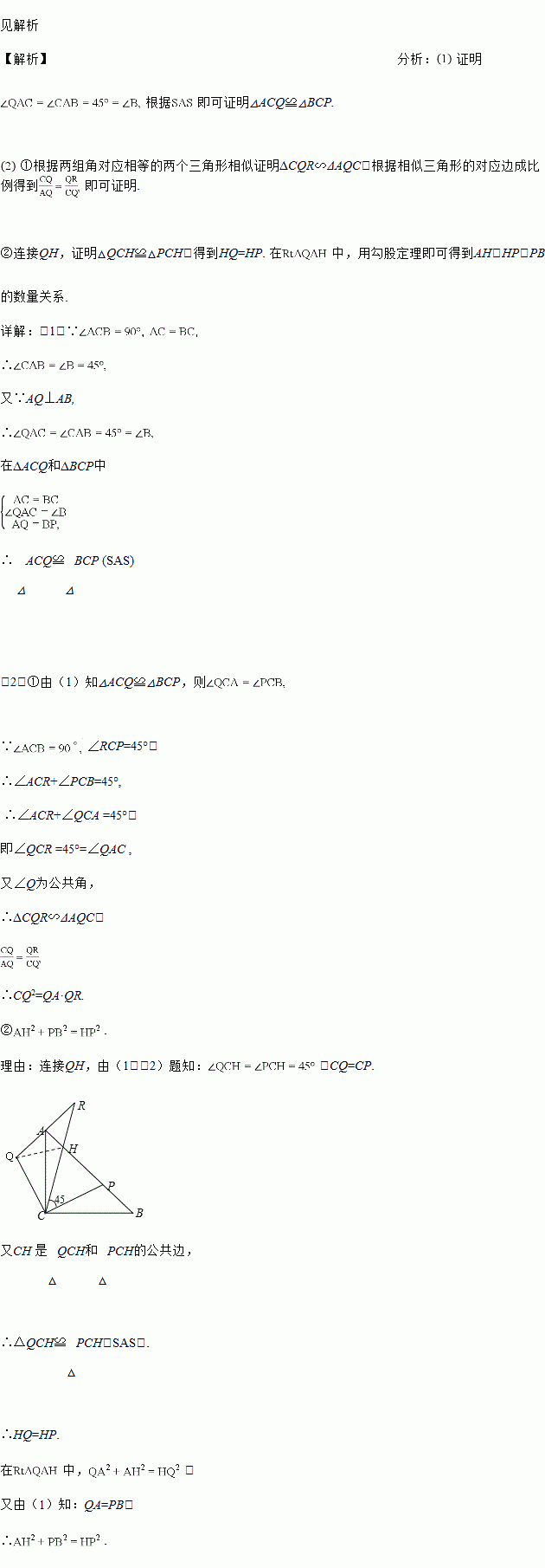 (2)延长QA至点R,使得∠RCP=45°,RC与AB交于点H,如图2.