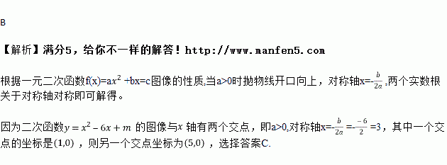 已知二次函数y=x2﹣5x+m的图象与x轴有两个交点,若其中一个交点的坐标为(1,0),则另一个交点的坐标为( )