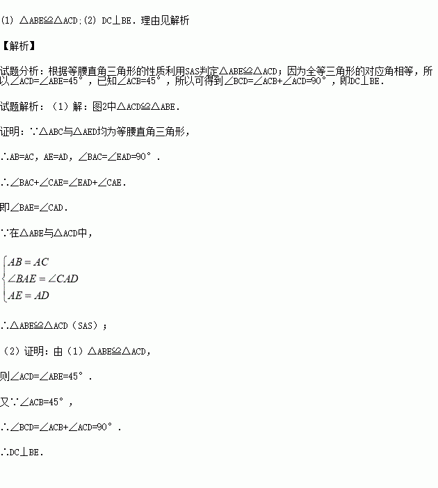两个大小不同的等腰直角三角板如图1所示放置,图2是由它抽象出的几何图形,B,C,E在同一条直线上,连结DC.