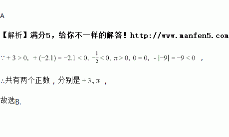 、π、0、﹣|﹣9|中,正数有( )
