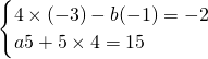 把x=14代入①得,-14+5y=15,