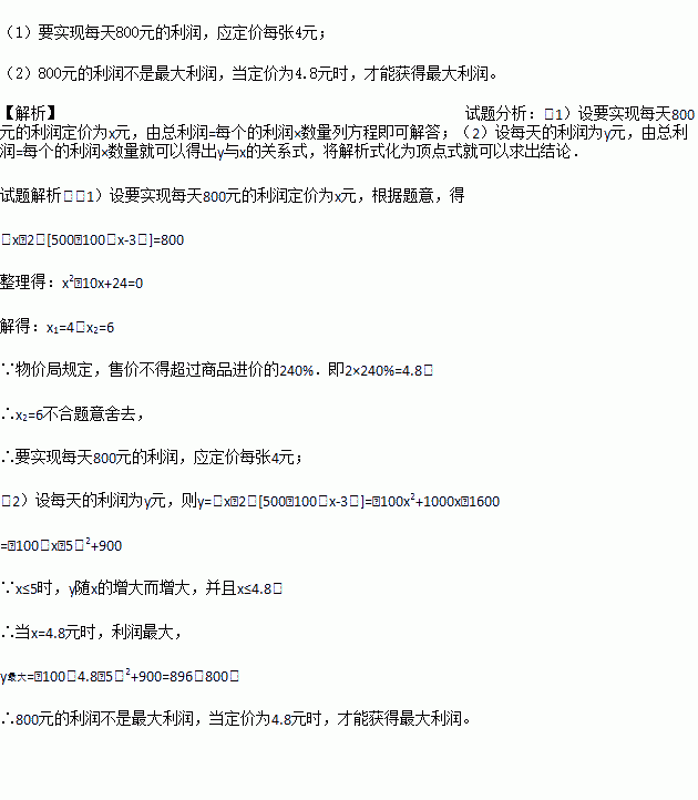 (2)800元的利润是否最大?如何定价,才能获得最大利润?