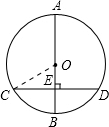 试题分析:连接OC,先求出半径和CE的长度,再利用勾股定理求出弦心距OE的长,即得结果.