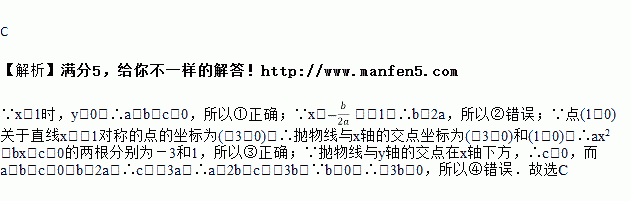 如图,是二次函数 y=ax2+bx+c(a≠0)的图象的一部分,给出下列命题:①a+b+c=0;②b>2a;③ax2+bx+c=0的两根分别为﹣3和1;④a﹣2b+c>0.其中正确的命题是( )
