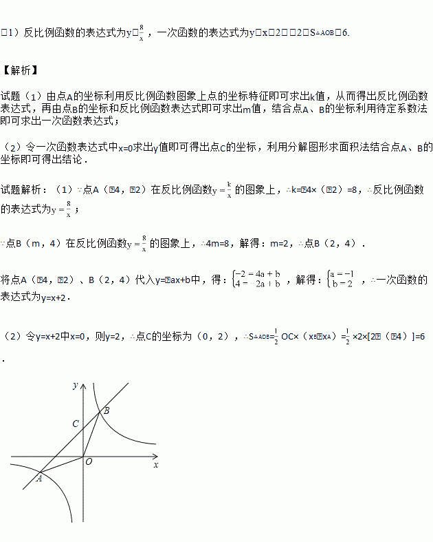的图像相交于点A(-4,-2),B(m,4),与y轴相交于点C.