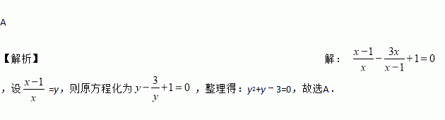 A 【解析】【解析】 ,设=y,则原方程化为,整理得:y2+y﹣3=0,故选A.