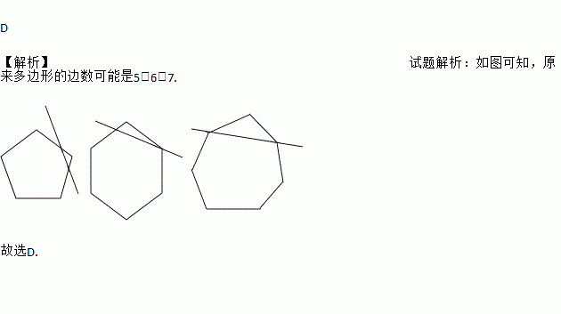 一个多边形截去一个角后,形成一个六边形,那么原多边形边数为 ( )
