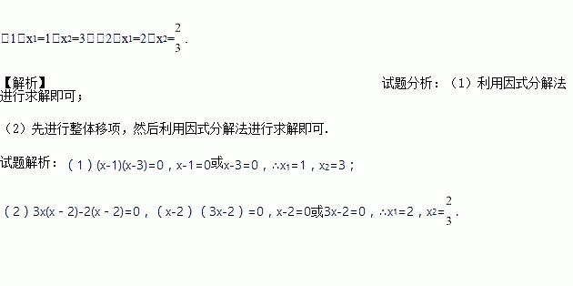 解下列方程:(1) (2)3x(x-2)=2(x-2)