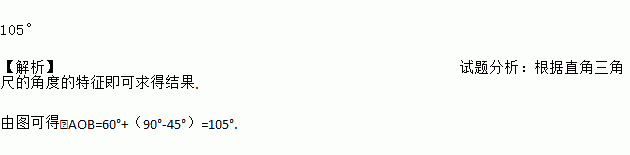 将一副常规的三角尺按如图方式放置,则图中∠AOB的度数为________