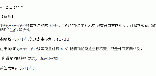 将抛物线y=2(x+1)2+7绕顶点旋转180°后得到的抛物线的解析式为_____.