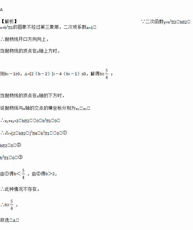以x为自变量的二次函数y=x2﹣2(b﹣2)x+b2﹣1的图象不经过第三象限,则实数b的取值范围是( )