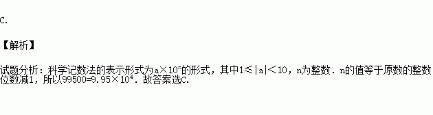 A.0.995×105 B.9.95×105 C.9.95×104 D.9.5×104