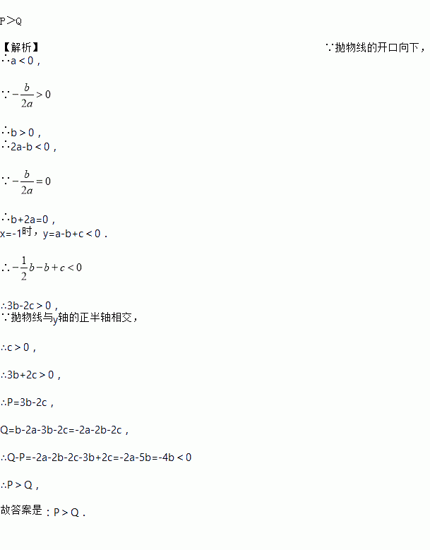 二次函数y=ax2+bx+c的图象如图11所示,且P=|2a+b|+|3b-2c|,Q=|2a-b|-|3b+2c|,则P,Q的大小关系是______.