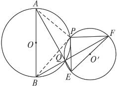 (2)⊙O′与⊙O相交于点P,Q(见图9-17乙),连结AQ、BQ并延长分别交⊙O′于点E、F,请选择下列两个问题中的一个作答: