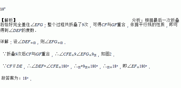 如图(1)所示为长方形纸带,将纸带沿EF折叠成图(2),再沿BF折叠成图(3),继续沿EF折叠成图(4),按此操作,最后一次折叠后恰好完全盖住∠EFG;整个过程共折叠了9次,问图(1)中∠DEF的度数是_____.