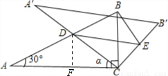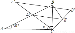 如图,将含30°角的直角三角板ABC(∠A=30°)绕其直角顶点C顺时针旋转α角(0°<α<90°),得到Rt△A′B′C,A′C与AB交于点D,过点D作DE∥A′B′交CB′于点E,连接BE.易知,在旋转过程中,△BDE为直角三角形.设BC=1,AD=x,△BDE的面积为S.(1)当α=30°时,求x的值.