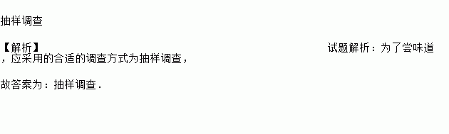 妈妈炖了一锅鸡汤,先用小勺舀了一点尝尝味道,这是利用了__________调查方式.(选填“普查”或“抽样调查”)