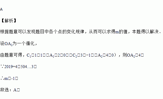 如图,一段抛物线:y=-x(x-2)(0≤x≤2)记为C1,它与x轴交于两点O,A1.将C1绕A1旋转180°得到C2,交x轴于A2;将C2绕A2旋转180°得到C3,交x轴于A3;…,如此进行下去,得到Cn.若点P(2 019,m)在抛物线Cn上,则m为( )