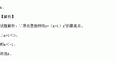 A. 【解析】 试题解析:∵原点是抛物线y=(m+1)x2的最高点, ∴m+1<0, 即m<-1. 故选A.