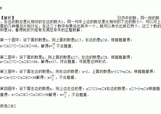 小华在某月的日历中圈出几个数,算得这三个数的和为36,那么这几个数的形式可能是( )