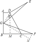 17.分析 过点D作DM⊥BC于点M,过点F作FN⊥GC于N,连接DG、CG,通过解直角三角形求得∠AGD=30°,∠CGB=60°,∠CGD=90°,进而求得∠EDG=150°=∠FCG,∠CGF=∠E,证得△DEG≌△CGF,得出DE=CG=2BG=12,CF=DG=4$\sqrt{3}$,即可求得CN=6,BF=10$\sqrt{3}$,GN=CG+CN=18,根据勾股定理求得FG=4$\sqrt{21}$,然后通过证得△DEH∽△NGF,得出$\frac{HE}{FG}$=$\frac{ED}{GN}$,即可求得HE的长.