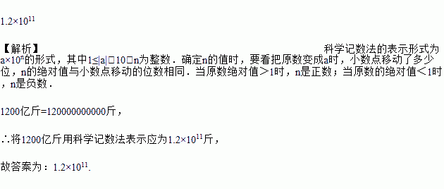 人民日报2018年2月23日报道,2017年黑龙江粮食总产量达到1203.76亿斤,成功超越1200亿斤,连续七年居全国首位,将1200亿斤用科学记数法表示为_____斤.