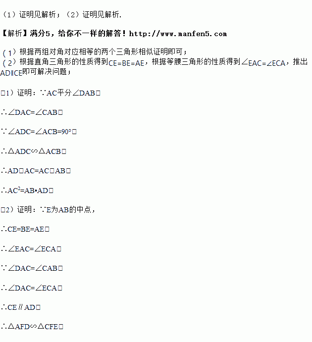 如图,四边形ABCD中,AC平分∠DAB,∠ADC=∠ACB=90°,E为AB的中点,