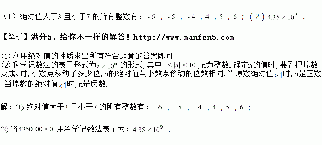 写出绝对值大于且小于的所有整数.