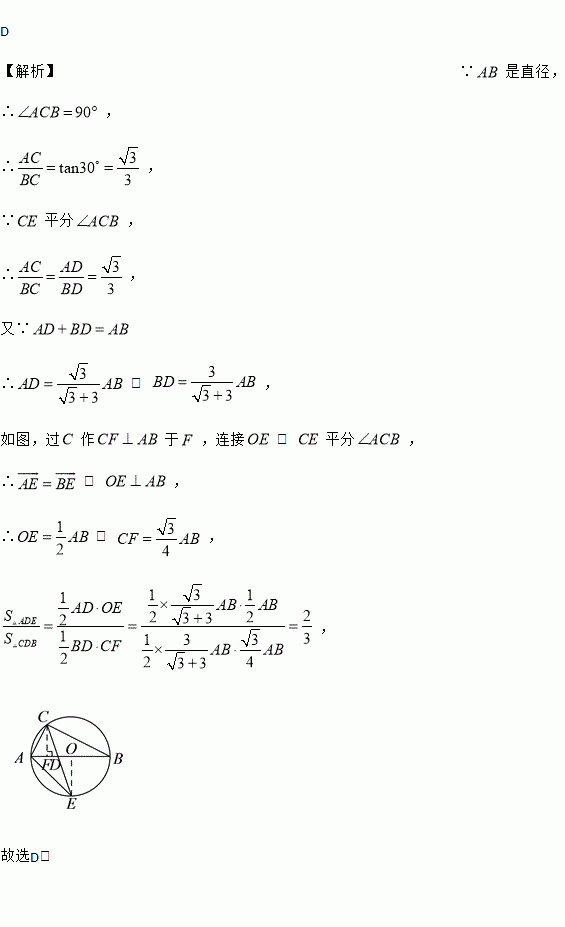 如图, 内接于⊙, 是⊙的直径, , 平分交⊙于,交于点,连接,则的值等于( ).