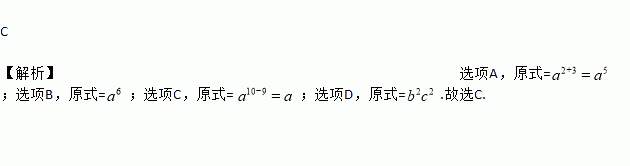 C. a10÷a9=a(a≠0) D. (-bc)4÷(-bc)2=-b2c2