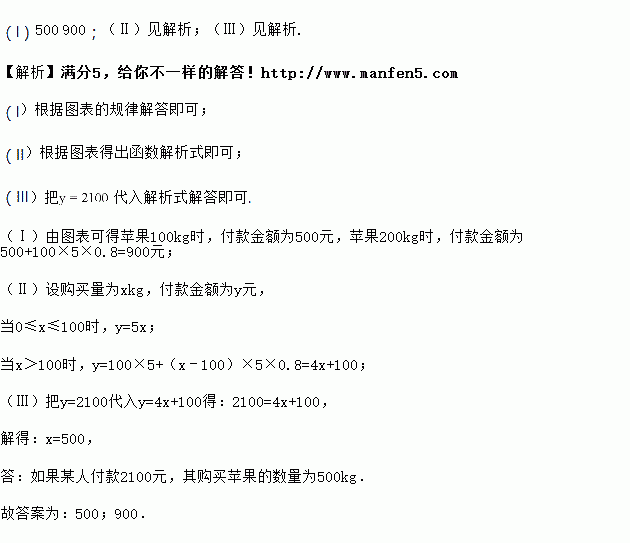 某水果批发市场规定,一次购买苹果不超过100kg(包括100kg),批发价为5元,如果一次购买100kg以上苹果,超过100kg的部分苹果价格打8折.
